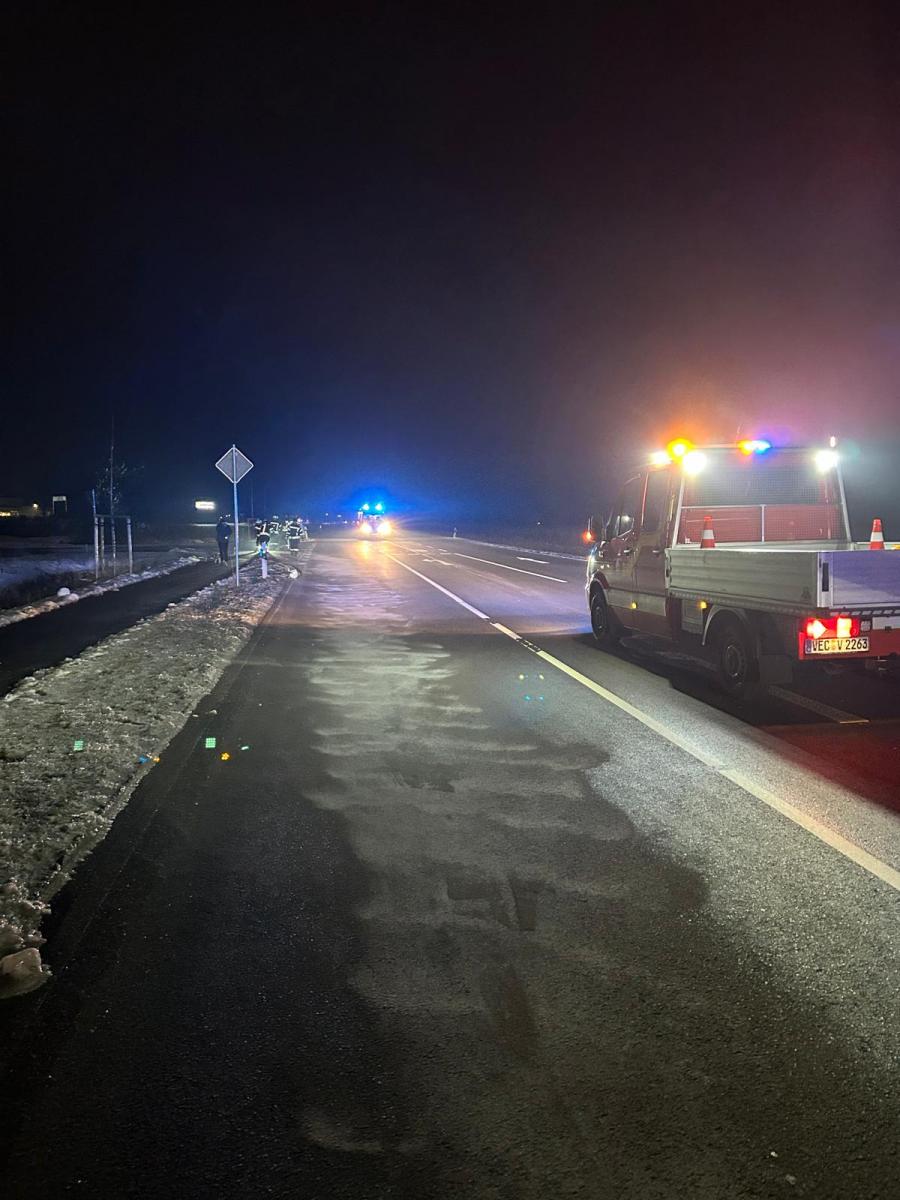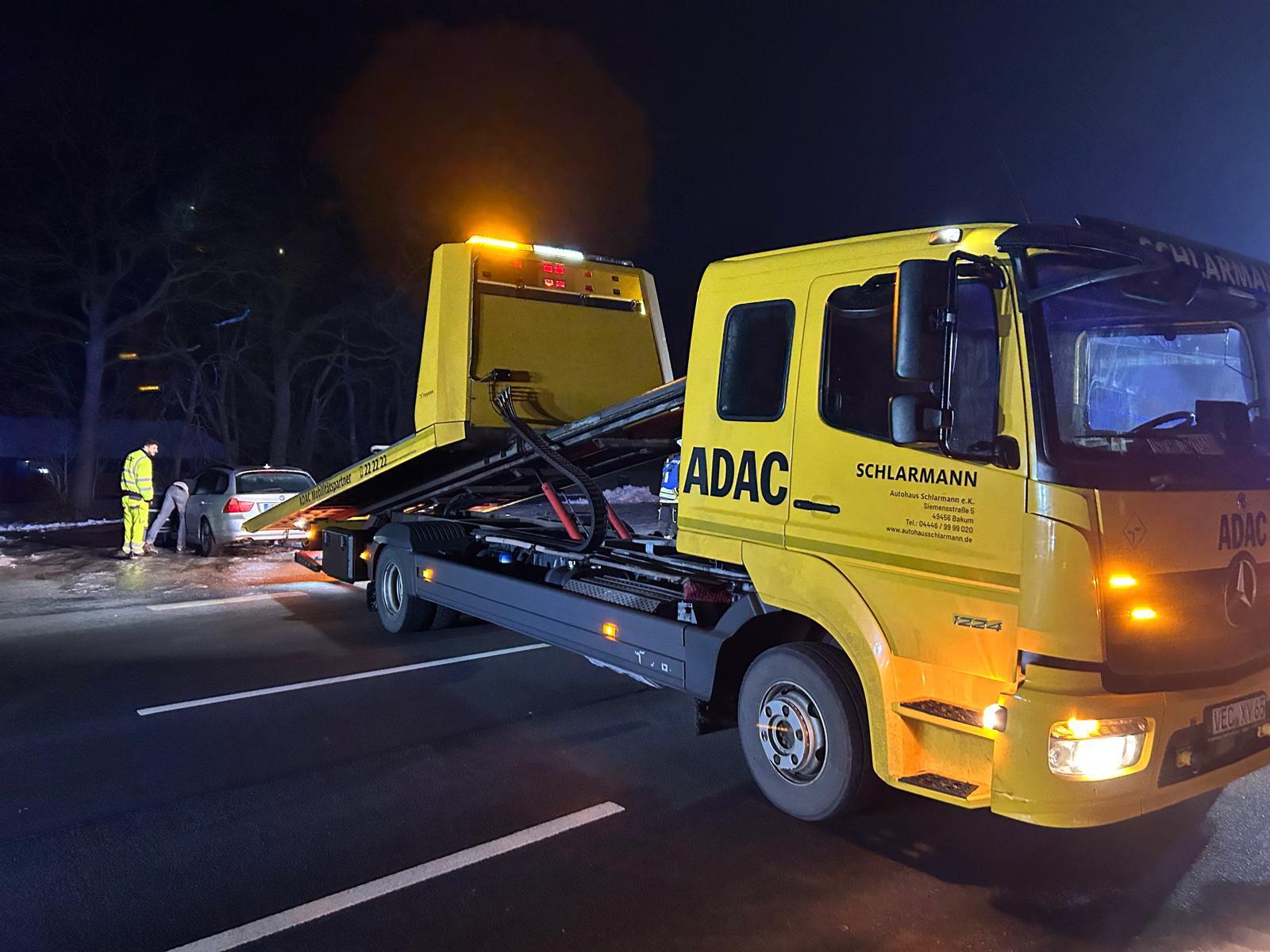 Lkw kommt auf winterglatter Fahrbahn von der Straße ab – Pkw verliert Diesel