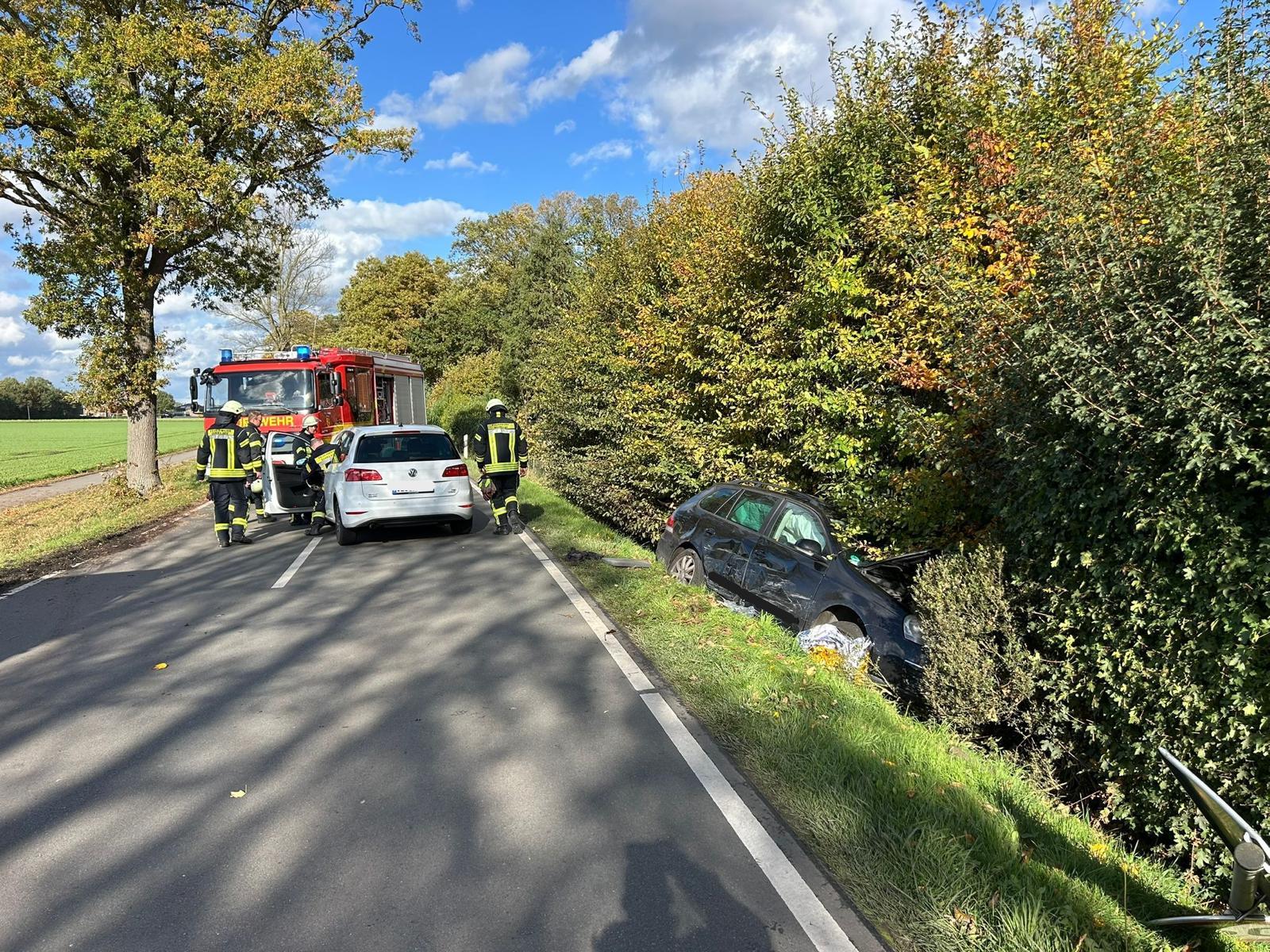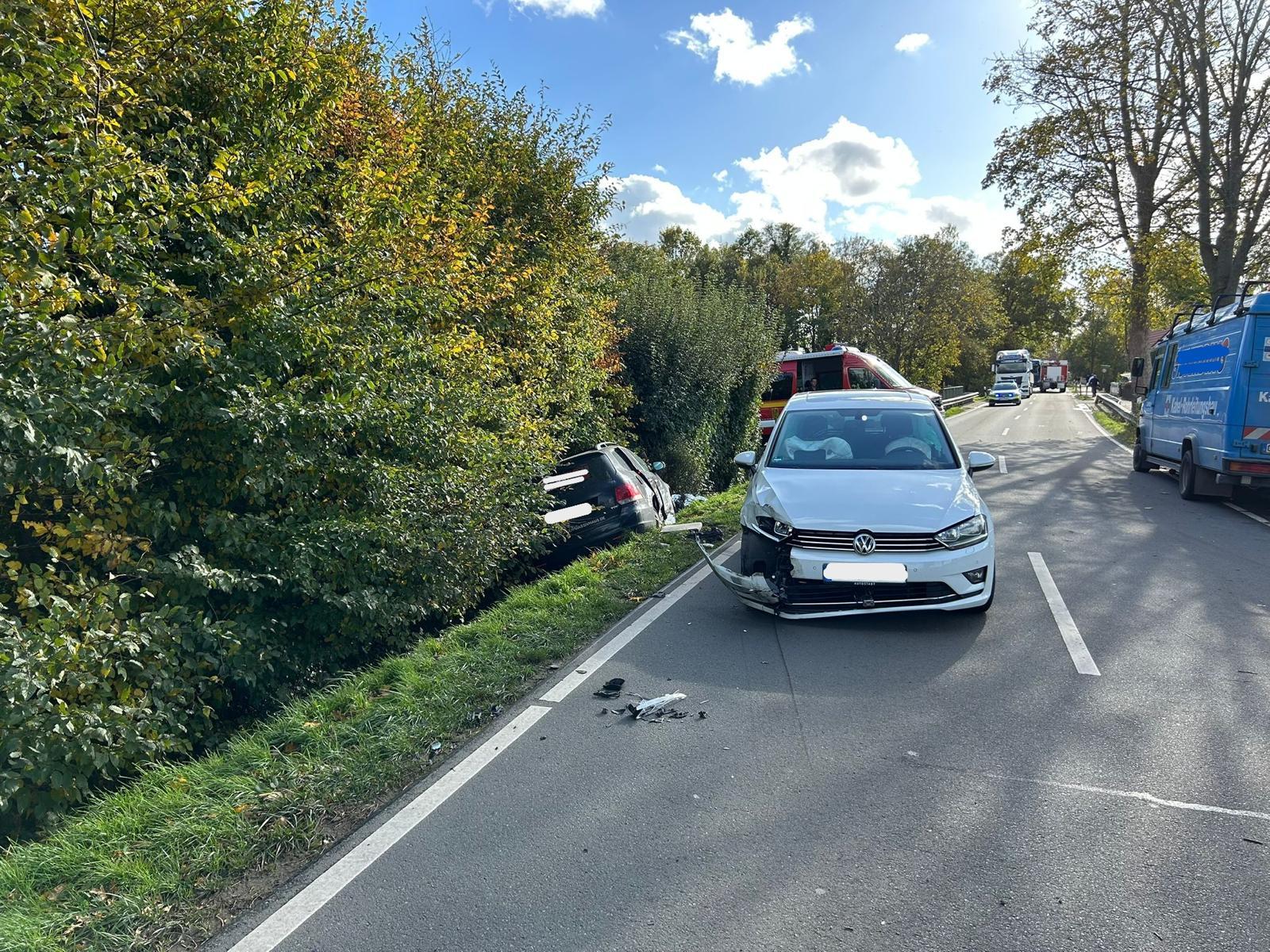 Zu einem Verkehrsunfall an einer Tagesbaustelle auf der Holdorfer Straße ist es am Donnerstag, 23.10.2025 gekommen. Eine Pkw-Fahrerin, die stadtauswärts unterwegs war, musste aufgrund von Gegenverkehr verkehrsbedingt halten. Der hinter ihr in gleicher Fahrtrichtung fahrende Pkw überholte den Pkw der Dinklagerin und kollidierte mit einem entgegenkommenden Pkw. Durch den Aufprall geriet der verursachende Pkw in den Straßengraben.