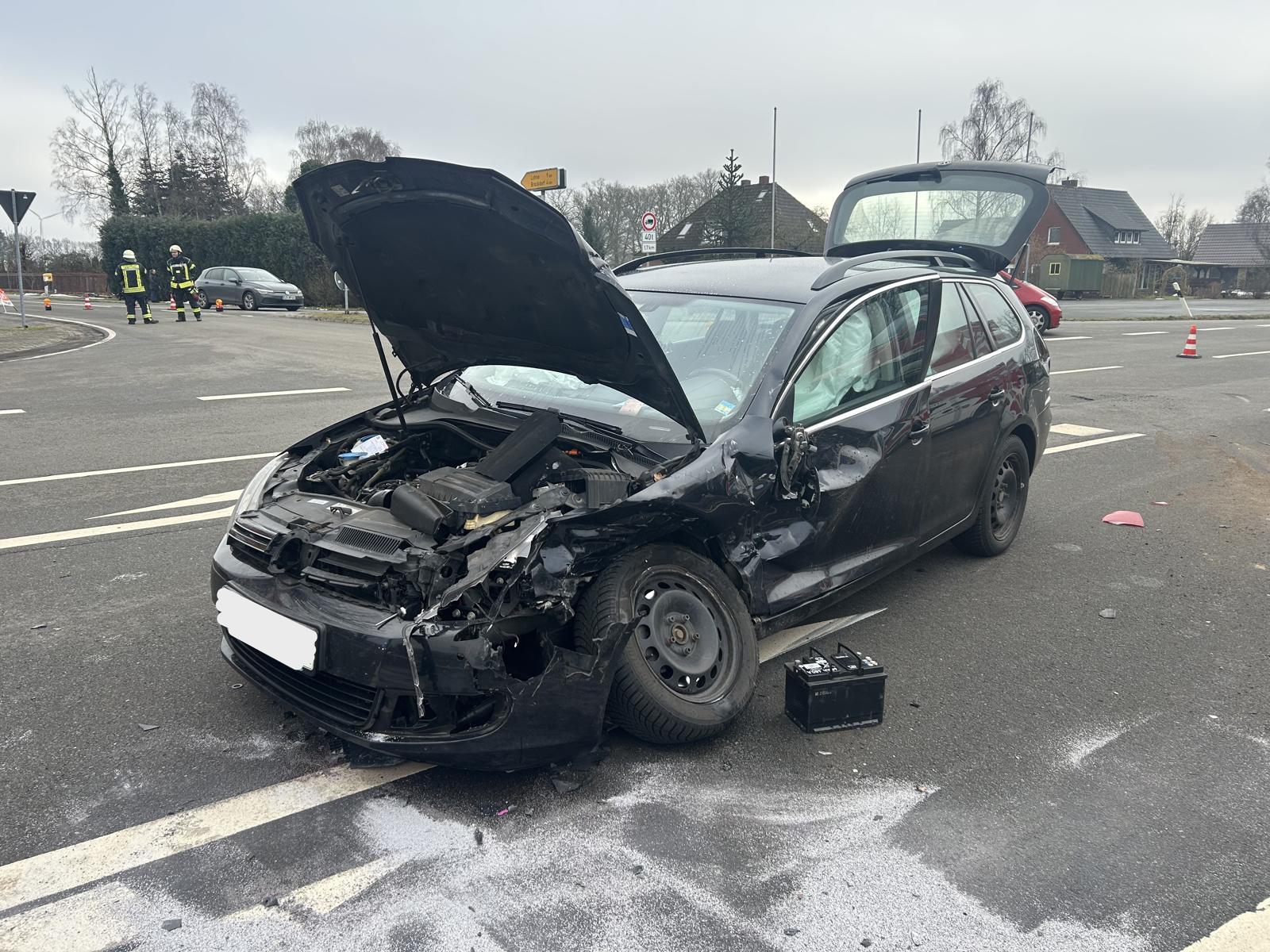 Ein missglückter Abbiegevorgang hat am Montagmittag zu einem Unfall zwischen zwei Fahrzeugen auf der Holdorfer Straße geführt, bei dem der Verursacher verletzt wurde. Der Fahrer wollte von der Brockdorfer Straße nach links auf die Holdorfer Straße abbiegen und hat dabei einen jungen Autofahrer, der die Straße in Richtung Dinklage befuhr, übersehen. Es kam zum Frontalzusammenstoß und der Autofahrer wurde in seinem Fahrzeug eingeklemmt.